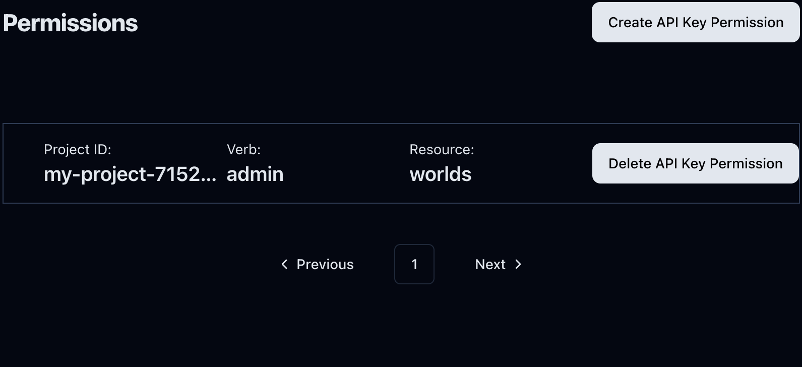 To delete an API Key Permission, click the Delete API Key Permission button.