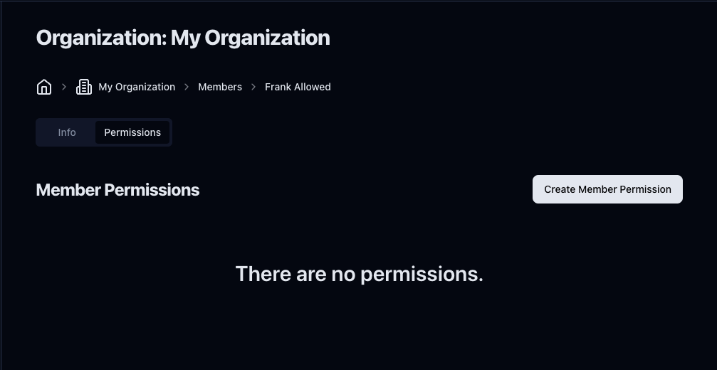 Click Create Member Permission, and a modal will pop up. Here, you can select the project, resource, and verb.