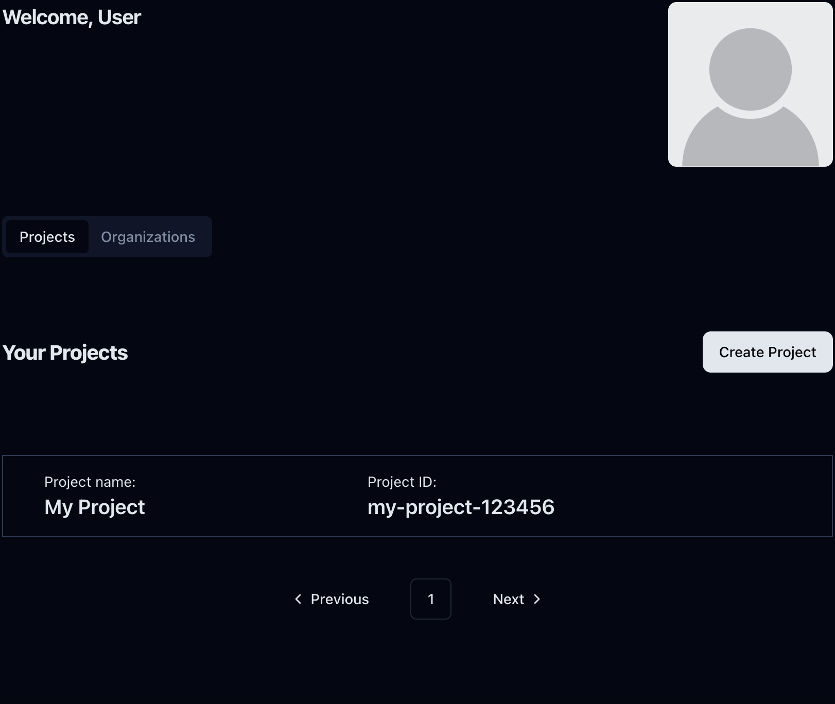 You can then click Projects on the right and Crete Project. If you create a project on this page, the organization field will be pre-selected and can't be changed.
